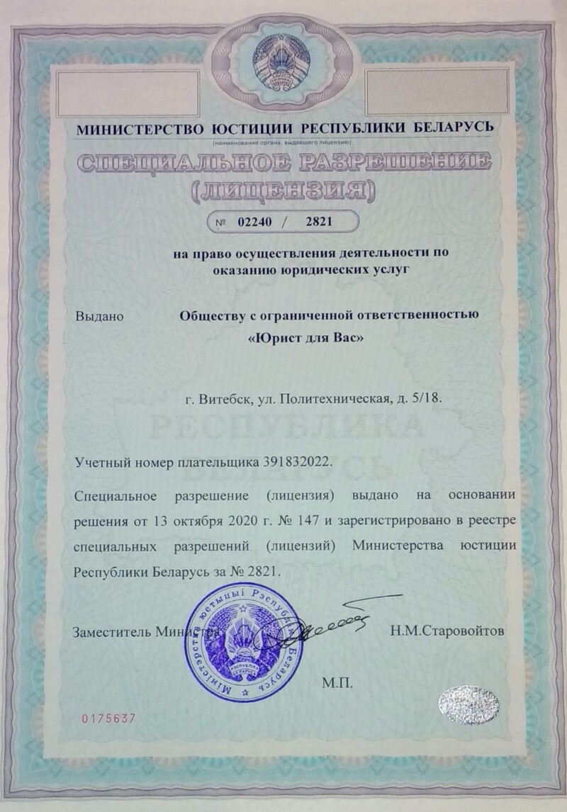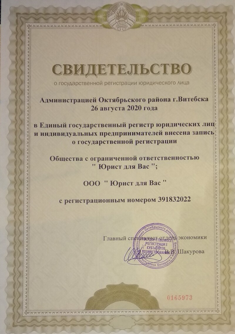 | Регистрация общества с ограниченной ответственностью, общества с дополнительной ответственностью | от 100 BYN |