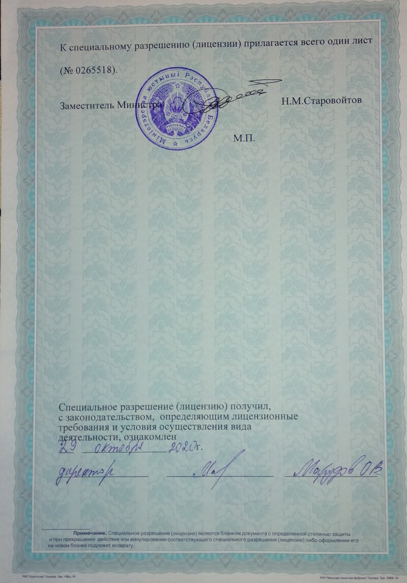 | Получение лицензий, сертификатов и иных разрешений (сопровождение при административных процедурах) | от 120 BYN |